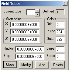 The Field Tubes dialog pops up when you click the Field Tubes… button in OpenGL window dialog.